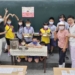 ▲縣長翁章梁與小朋友在現場分送康乃馨,祝福往來遊客母親節快樂。(嘉義縣政府提供)