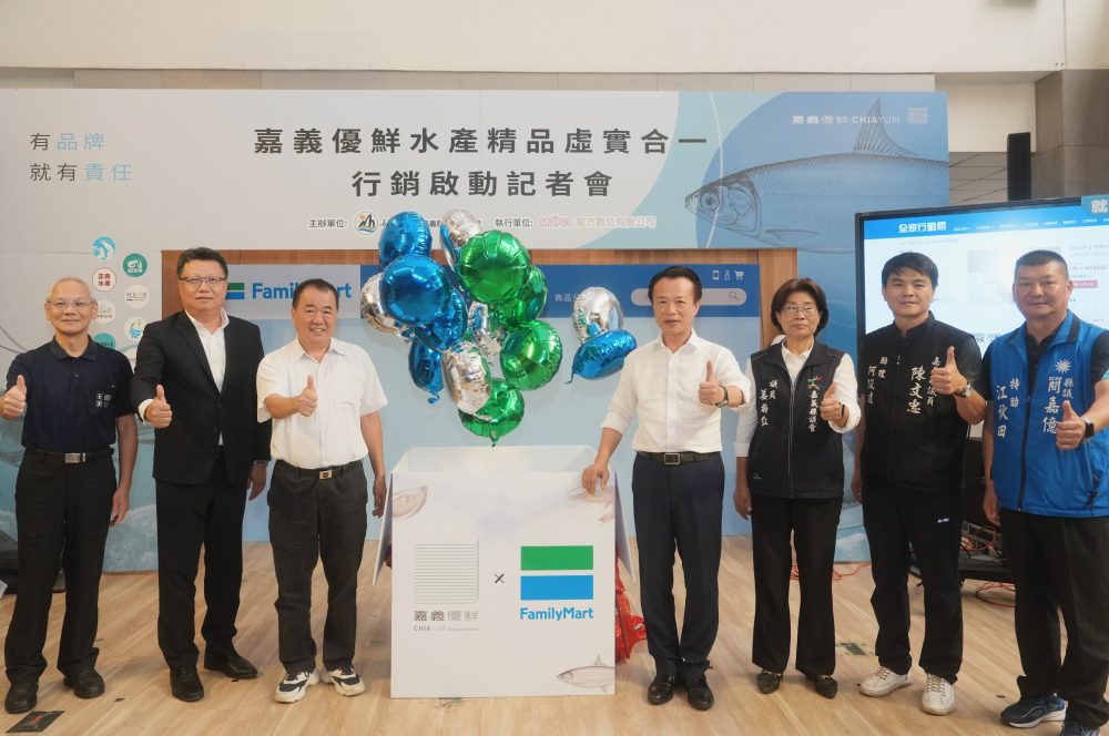 嘉義縣政府與全家便利商店再度合作,嘉義優鮮水產躍上全家「FamiSuper」、「全家行動購」及「店長團購」虛實平台。縣府於8月1日舉辦「嘉義優鮮水產精品虛實合一行銷啟動記者會」,翁章梁縣長與全家林鴻成部長啟動全家行動購嘉義優鮮水產專區,並響應2024巴黎奧運,縣長也與陸巧因主廚應用在地水產,示範料理10道色香味俱全的全能滿漢全席,一起為奧運台灣健兒加油,也展現「嘉義優鮮」金牌水產產品硬實力。