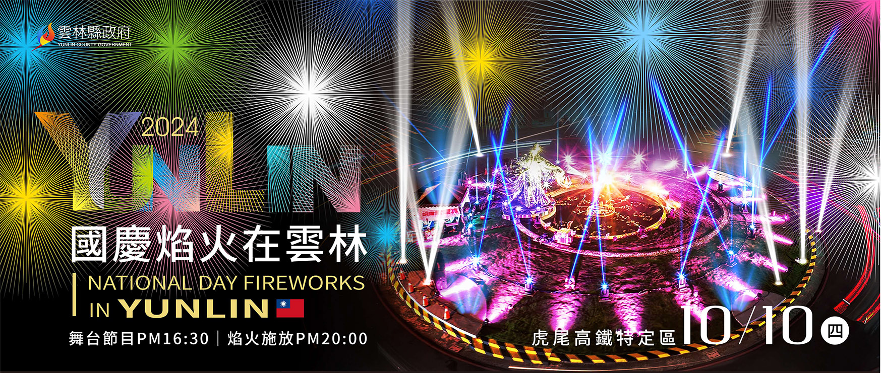2024雲林國慶焰火於10月10日在雲林縣虎尾鎮高鐵特定區施放,當天下午4點30分起由舞台表演開始熱身,晚間8點開始施放焰火。