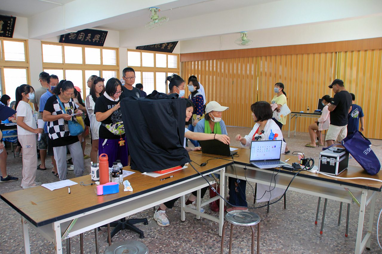 嘉義市信賴眼科21日赴東石鄉港口宮義診,一個上午看了近百名患者,附近小學生帶著視力複檢單來,另有一半是中老年村民,部分有初期白內障症狀,信賴眼科院長賴麗如囑咐,要找時間到醫院檢查。