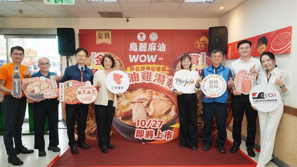 雲林良品攜手三商餐飲集團落實企業ESG與在地永續發展,與旗下知名品牌「三商巧福」、「拿坡里披薩.炸雞」共同研發聯名產品、接力上市。特地於10/9日辦理烏麗麻油WOW聯名推廣記者會,與民眾分享期間限定「拿坡里披薩.炸雞」金賞烏魚子披薩,及預告「三商巧福」即將於10月27日上市的麻油雞湯麵,在現場參加活動的百位民眾,更獲得金賞烏魚子披薩一份與麻油雞湯麵兌換卷,現場熱情踴躍,可見聯名產品對於民眾相當具有吸引力。