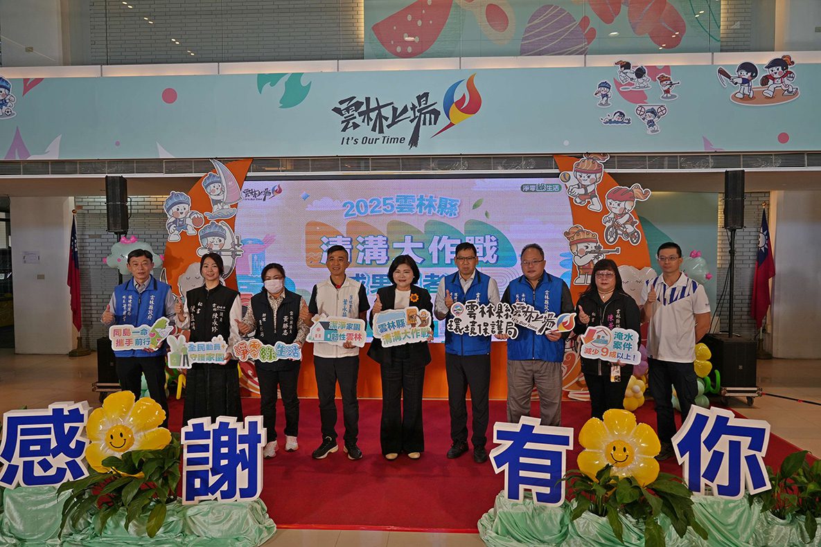 雲林縣政府推動「清溝大作戰」有成,今(24)日於縣府親民空間舉行「清溝大作戰」成果記者會。截至今年共完成1211公里衛生溝渠清理,清除3.56萬公噸雜物、污泥,有效降低社區淹水風險93%,同時減少惡臭、病媒孳生,讓家園保持乾淨、安全、無臭味,更朝「零淹水、零孳生源、零登革熱」的永續城市邁進。