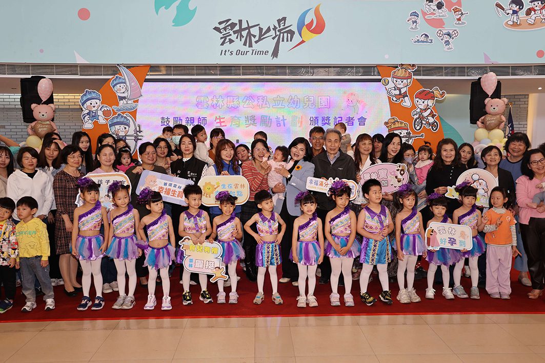 雲林縣政府今(3)日上午於縣府親民大廳舉辦「雲林縣公私立幼兒園鼓勵親師『生育獎勵』計畫頒獎記者會」,由縣長張麗善親自頒獎向積極響應政策的公私立幼兒園、教職員與家長齊心為少子化激勵政策的付出及支持,表達肯定與感謝。