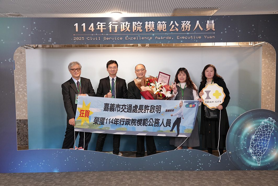 114年行政院模範公務人員合計中央與地方共有36人獲選。嘉義市政府交通處長許啟明於任內積極推動高鐵聯外嘉義輕軌建設、推動三橫三縱三環新路網規劃、興建5處立體停車場及改善交通規劃解決長年交通瓶頸,獲此殊榮實至名歸。