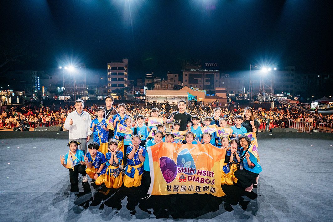 當晚由世賢國小扯鈴小將率先登場,孩子們平時利用課餘時間勤練扯鈴技巧,此次站上大型舞台展現十足自信。演出巧妙結合高難度扯鈴技巧、舞蹈動作、隊形變化與音樂節奏,畫面活潑又震撼,贏得現場觀眾熱烈掌聲。