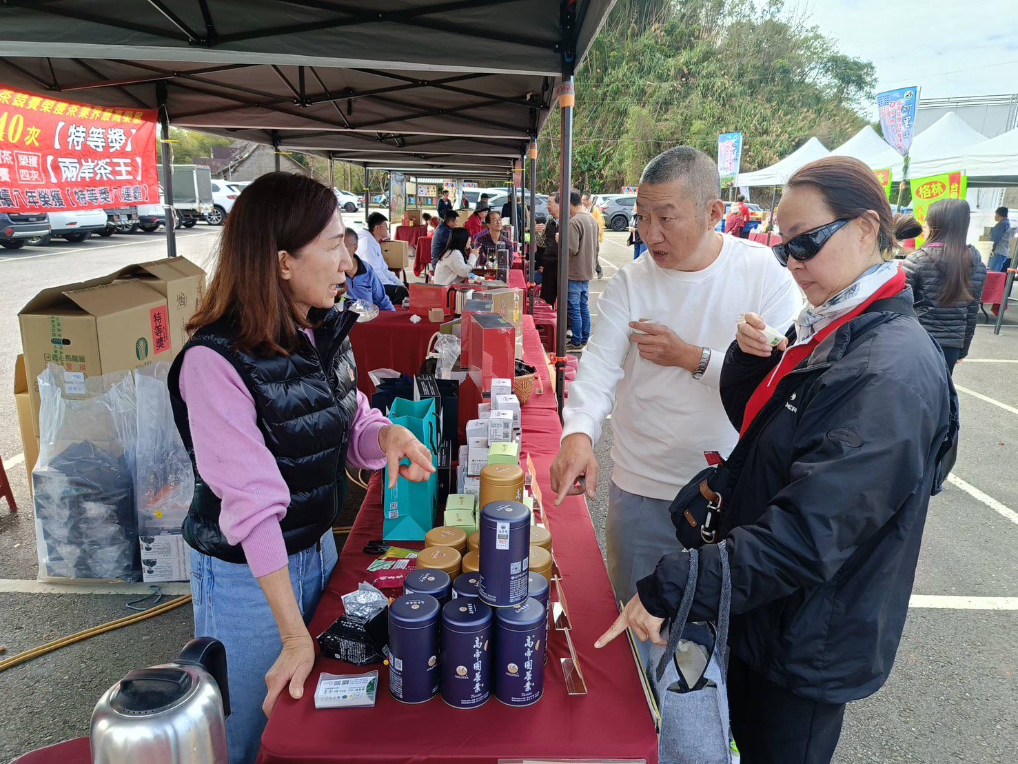 ▲現場同時進行展售促銷活動,吸引民眾品茗。(圖/嘉義縣政府提供)