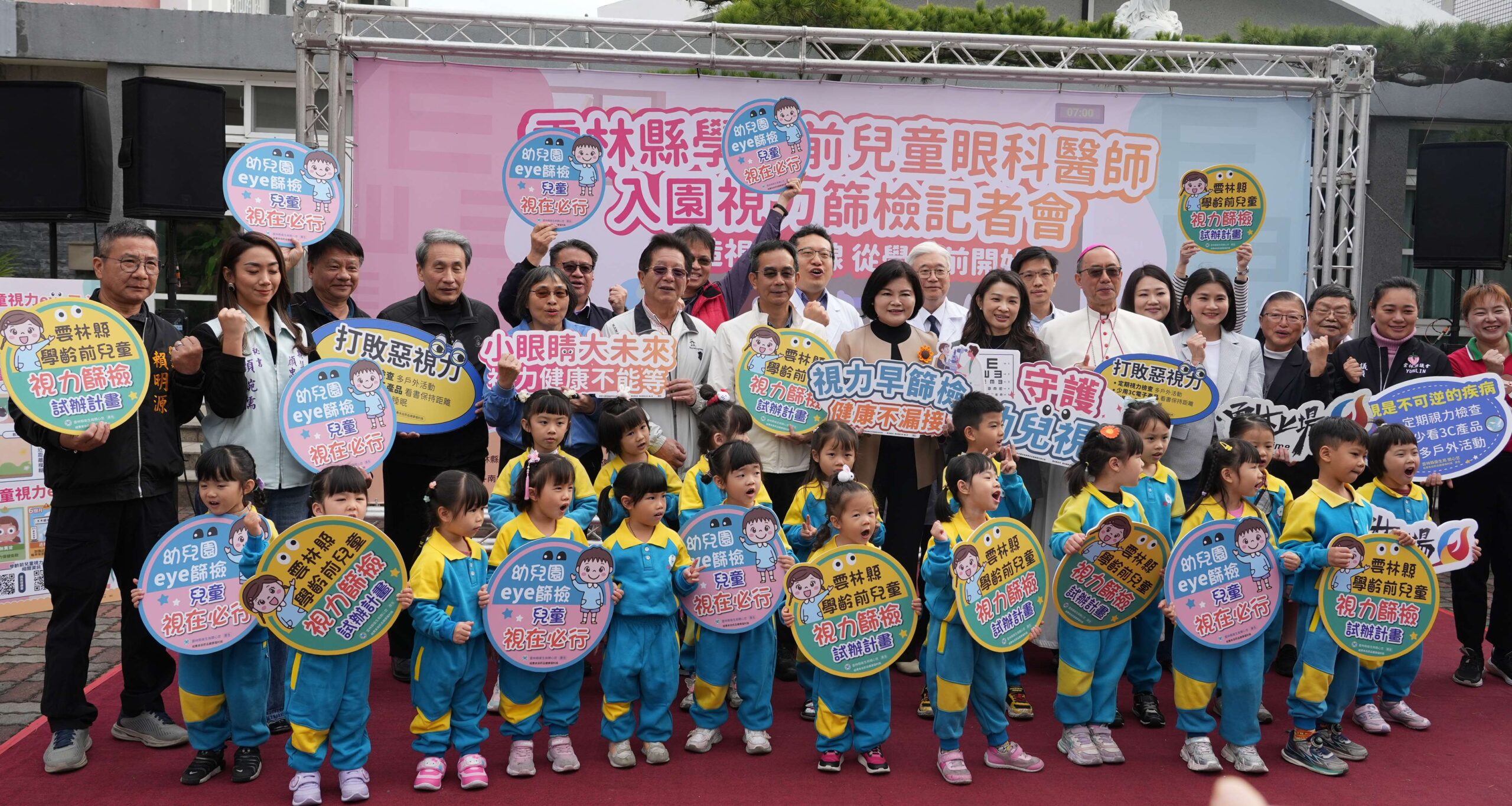 雲林縣政府舉辦「學齡前兒童眼科醫師入園視力篩檢記者會」,宣布攜手國民健康署、眼科醫療院所試辦該計畫,自1月16日起於天主教斗南幼兒園起跑。縣長張麗善期許透過衛生與教育體系合作,將專業醫療服務直接帶入幼兒園,守護幼兒視力健康、及早預防近視問題,讓每一位孩子都能擁有明亮清晰的視界。