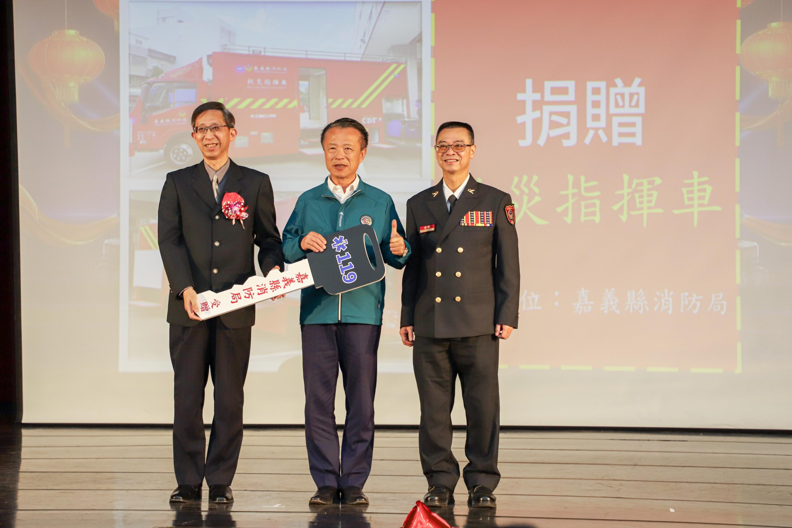 ▲正德防火工業股份有限公司捐救災通訊指揮車,提升消防量能。(圖/嘉義縣政府提供)