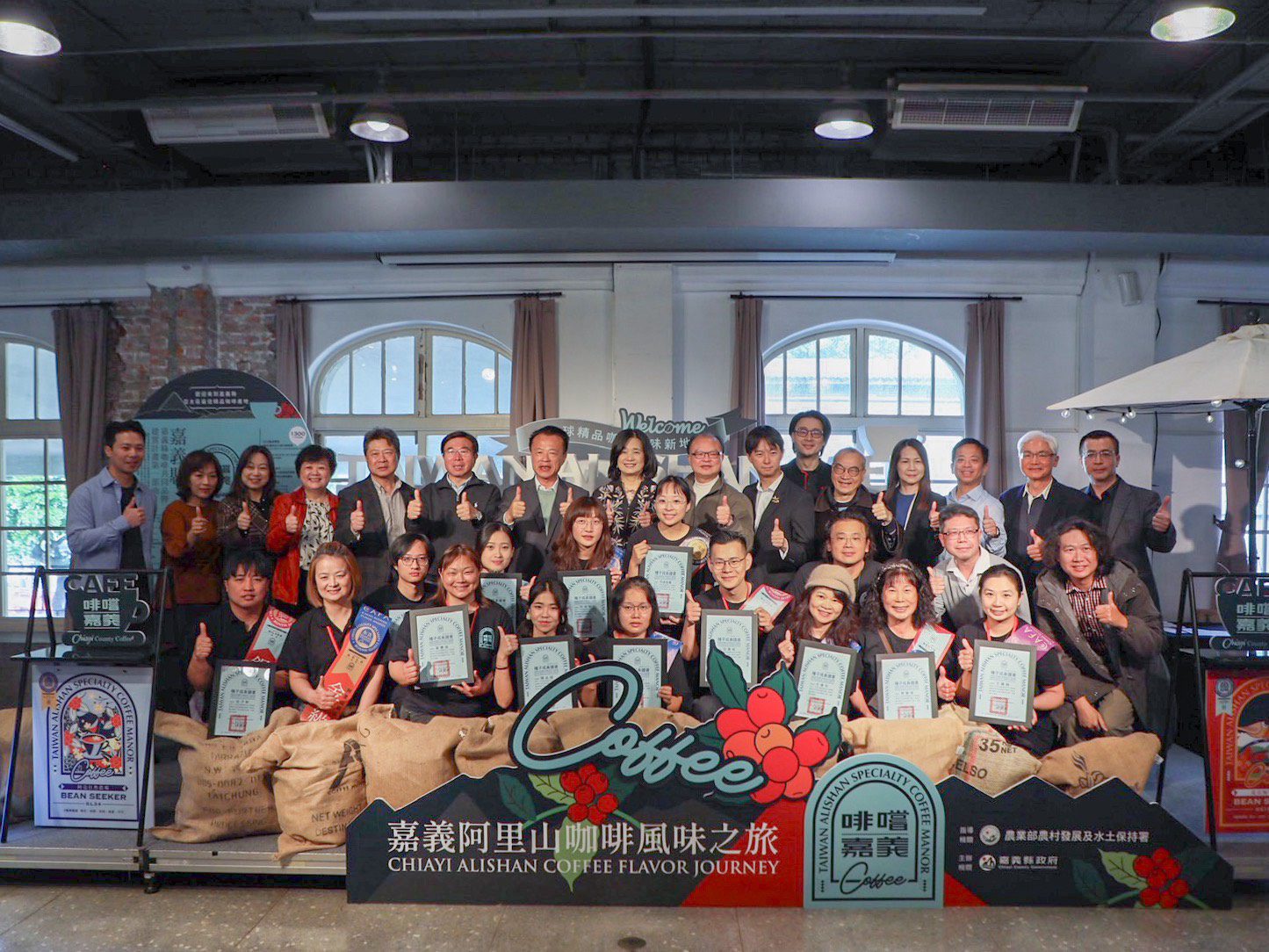 翁章梁並頒發種子成員證書,肯定他們在咖啡產業推動上的投入與努力,勉勵業者持續精進,為嘉義咖啡累積金字招牌口碑。