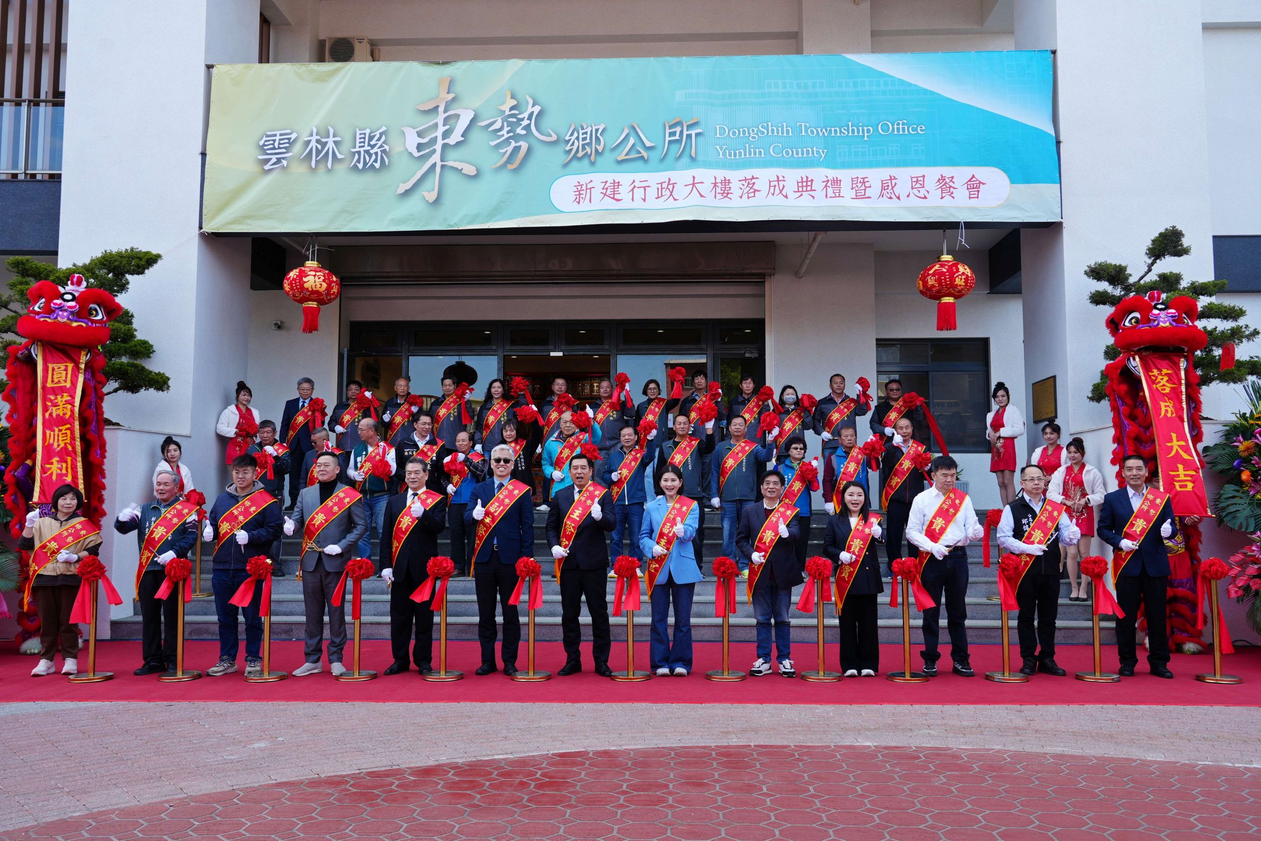 雲林縣東勢鄉公所今 (29) 日上午舉行「雲林縣東勢鄉新建行政大樓」正式落成啟用典禮,將提供民眾更優質行政服務品質,以及更舒適友善公眾場域,副縣長陳璧君、內政部次長吳堂安、立委吳琪銘、立委張嘉郡、議長黃凱、民政處長蕭德恕、鄉長張健福、鄉代會主席劉家瑋及各界民意代表與鄉親共同剪綵,見證東勢鄉行政建設的重要里程碑。