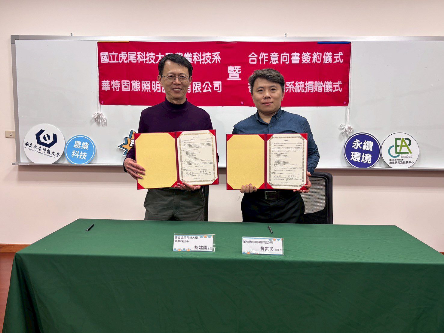 為引領台灣農業邁向高值化與數位化轉型,華特固態照明股份有限公司(以下簡稱華特固態照明)今日向國立虎尾科技大學農業科技系(以下簡稱虎科大農科系)捐贈價值40萬的「溫室光環境智能控制系統」。雙方並同步簽署產學合作意向書,宣示將共同建立以產業需求為導向的合作平台,透過AI環境控制技術與智慧照明,培育下一代綠金人才。
