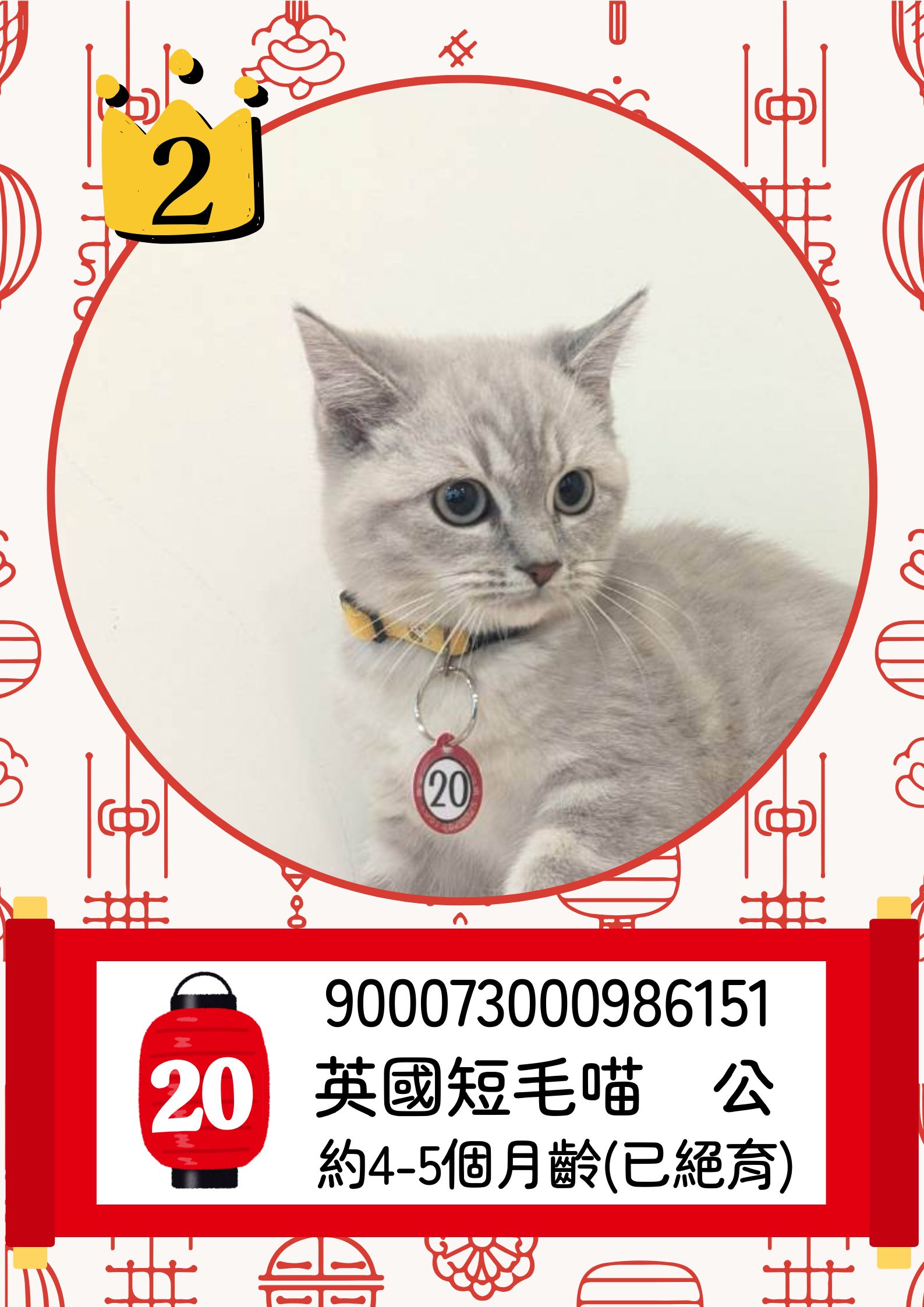 登記人氣王前3名都是英國短毛貓,值得一提的是,其中一隻緊急收容安置的混種幼貓即使沒有品種光環,仍吸引63位民眾登記爭取認養資格,展現社會大眾對生命價值的高度認同。