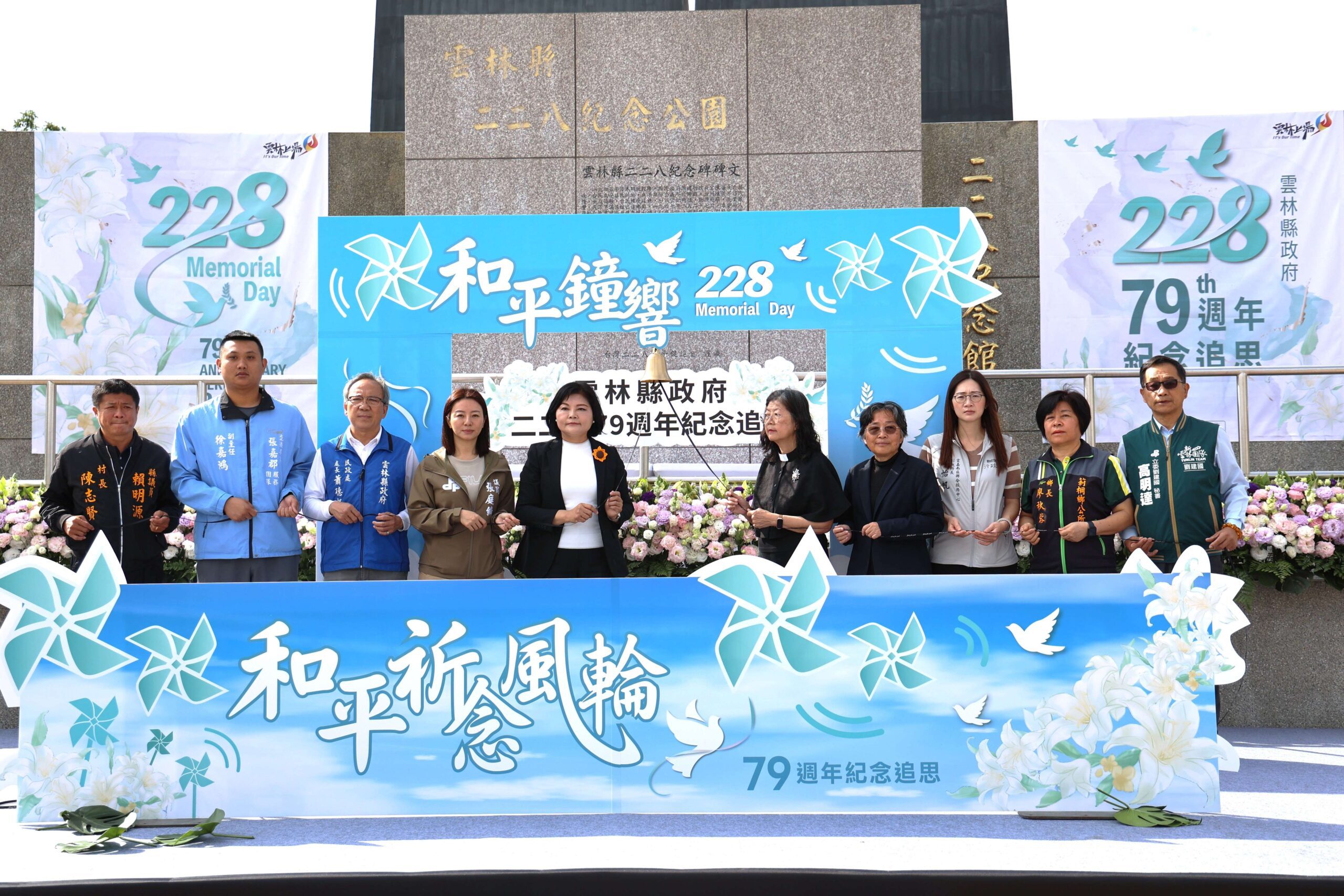 雲林縣政府27日在古坑鄉二二八紀念公園舉辦「二二八事件79週年紀念追思活動」,由縣長張麗善率縣府團隊及地方首長、民代與中央代表出席,與受難者家屬獻上洋桔梗、百合花致意。活動在雲音樂團演奏中揭開序幕,並由台灣基督長老教會嘉義中會副議長徐鈺定牧師帶領默哀追禱,隨後敲響和平鐘、插上和平祈念風輪,祈願台灣平安、世界和平,現場氣氛莊嚴肅穆。