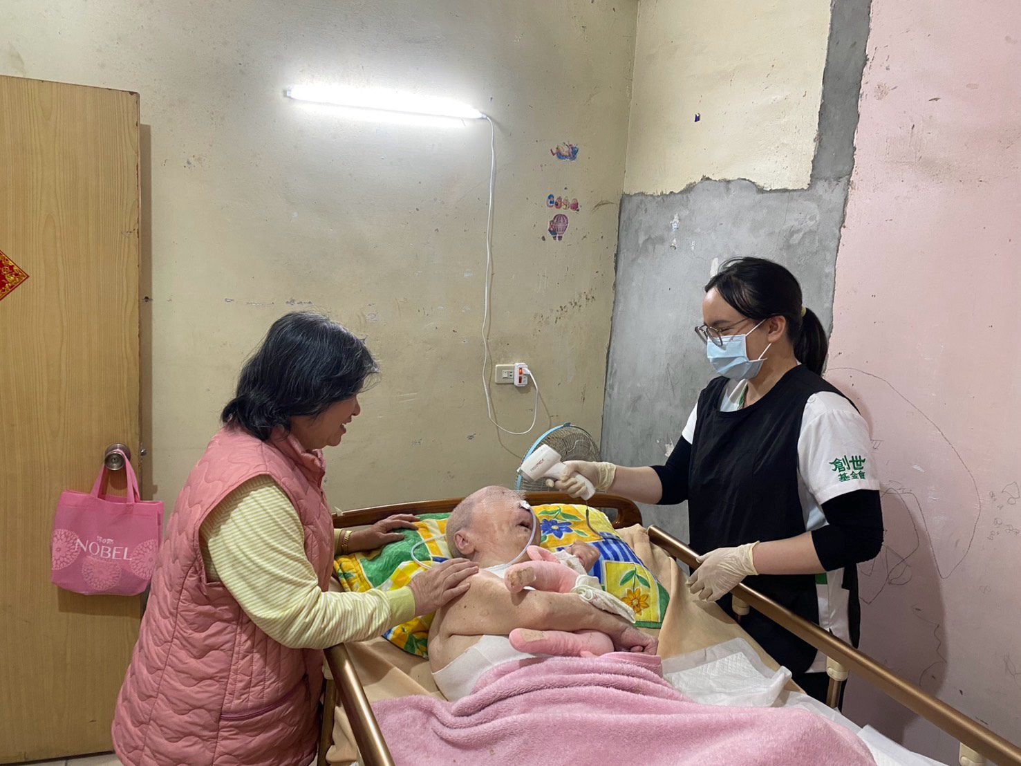創世花蓮分會在2022年開始提供到宅服務,每月由護理師親自到府協助植物人原床泡澡,分擔家庭照顧壓力,陪伴媳婦走過無數個長照低谷。