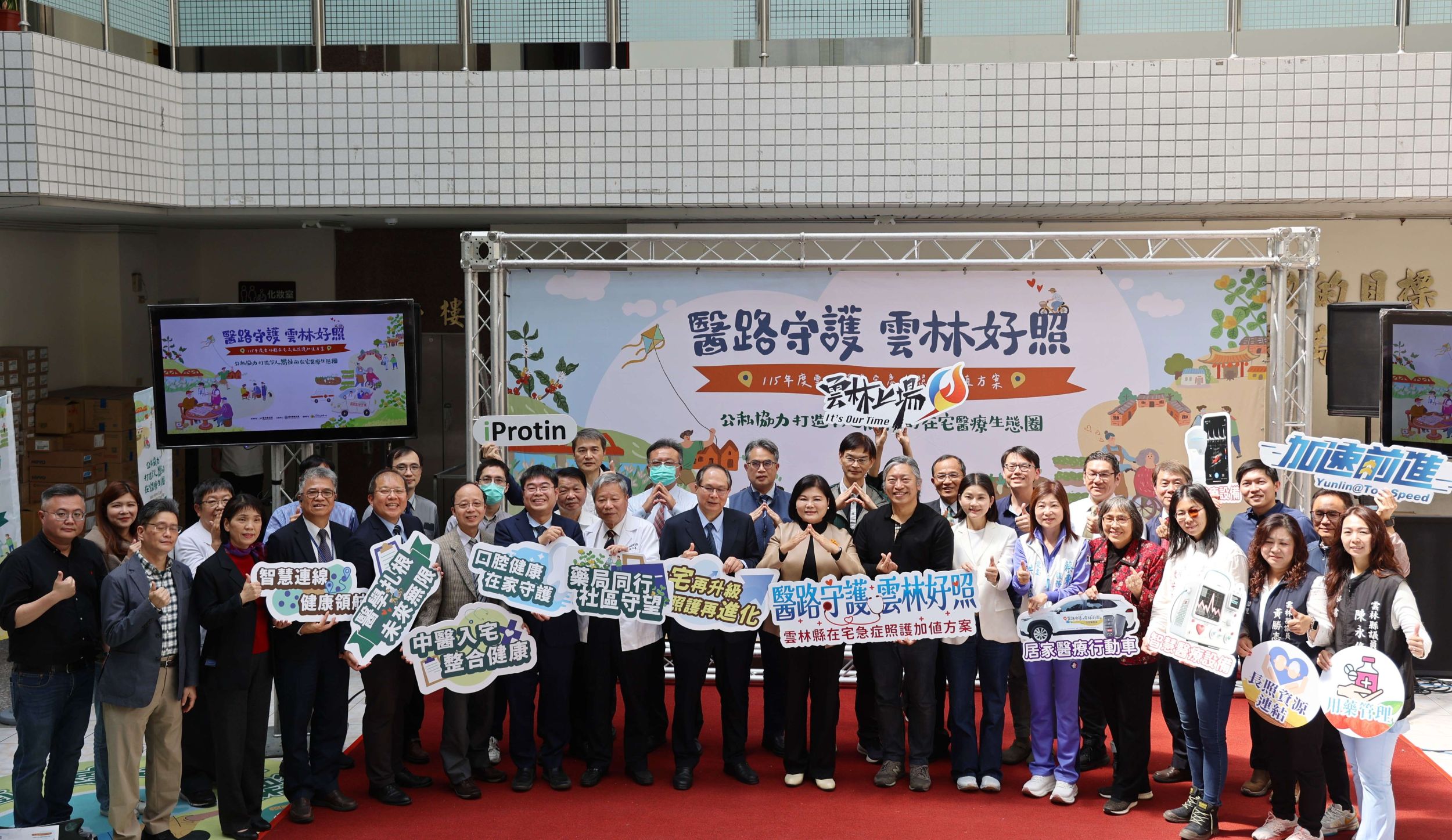 雲林縣政府今(3/6)日於雲林縣衛生局一樓中庭舉辦「115年度雲林縣在宅急症照護加值方案啟動記者會」,縣長張麗善開心分享透過支援中心統籌跨院協調、設備調度與教育訓練,雲林在宅急症已由試辦計畫邁向穩定運作之制度雛形,奠定後續制度整合與示範推動基礎。同時,現場邀集副縣長陳璧君、雲林縣衛生局長曾春美、縣議員李明哲、陳芳盈、臺大雲林分院、中國醫藥大學北港附設醫院及雲林基督教醫院等六大醫院、三大核心醫院團隊、醫界公會代表共同見證雲林在宅醫療政策邁入制度整合新階段